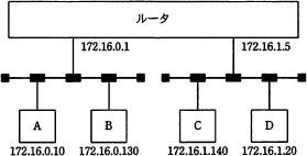 応用情報技術者 平成21年度春期午前問36 << 前の問題 | 次の問題 >>午前問36IPネットワークにおいて、二つのLANセグメントを、ルータを経由して接続する。ルータの各ポート及び各端末のIPアドレスを図のとおりに設定し、サブネットマスクを全ネットワーク共通で255.255.255.128とする。 ルータの各ポートのアドレス設定を正しいとした場合、IPアドレスの設定を正しく行っている端末の組合せはどれか。アAとBイAとDウBとCエCとD『情報処理過去問.com』からiPhoneアプリがリリースされました!!正解イ<< 前の問題 | 次の問題 >>