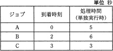 応用情報技術者 平成23年度秋期午前問17 << 前の問題 | 次の問題 >>午前問17ジョブの多重度が1で、到着順にジョブが実行されるシステムにおいて、表に示す状態のジョブA〜Cを処理するとき、ジョブCが到着してから実行が終了するまでのターンアラウンドタイムは何秒か。ここで、 OSのオーバヘッドは考慮しないものとする。ア11イ12ウ13エ14『情報処理過去問.com』からiPhoneアプリがリリースされました!!正解ア<< 前の問題 | 次の問題 >>
