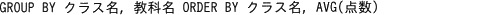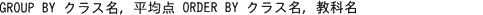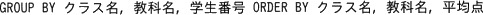 GROUP BY クラス名、教科名 ORDER BY クラス名、教科名