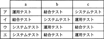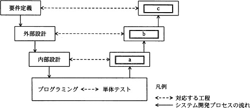 ITパスポート 平成22年度秋期午前問48 << 前の問題 | 次の問題 >>午前問48システム開発プロセスを要件定義、外部設計、内部設計、プログラミングに分け、テストの種類を運用テスト、結合テスト、システムテスト、単体テストに分けたとき、図の a〜cに入れる字句の適切な組合せはどれか。アイウエ『情報処理過去問.com』からiPhoneアプリがリリースされました!!正解イ<< 前の問題 | 次の問題 >>