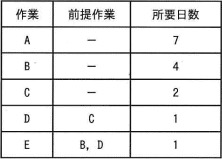ITパスポート 平成28年度春期午前問52 << 前の問題 | 次の問題 >>午前問52次の表に示す作業全体の最短の所要日数を増やすことなく作業Eの所要日数を増やしたい。最大何日増やすことができるか。ア0イ1ウ2エ3『情報処理過去問.com』からiPhoneアプリがリリースされました!!正解ウ<< 前の問題 | 次の問題 >>
