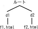 Webサーバ上において、図のようにディレクトリd1及びd2が配置されているとき、ディレクトリd1(カレントディレクトリ)にあるWebページファイル f1.html の中から、別のディレクトリd2にあるWebページファイル f2.html の参照を指定する記述はどれか。ここで、ファイルの指定方法は次のとおりである。〔指定方法〕ファイルは、"ディレクトリ名/…/ディレクトリ名/ファイル名"のように、経路上のディレクトリを順に"/"で区切って並べた後に"/"とファイル名を指定する。カレントディレクトリは"."で表す。1階層上のディレクトリは".."で表す。始まりが"/"のときは、左端のルートディレクトリが省略されているものとする。