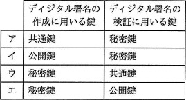 ディジタル署名に用いる鍵の組みのうち、適切なものはどれか。